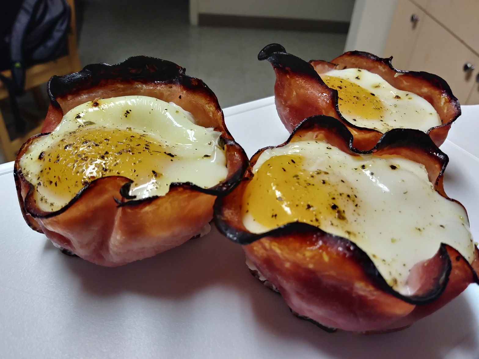 Muffin tin? Check. Eggs? Check. Ham? Check. Shredded cheese? Also check. These are very easy to make, and can make your morning routine (or whenever you want a portable meal) easier and faster if you make these in advance. I have typically filled up the whole muffin tin, and would reheat two of these forContinue reading “Egg Breakfast Cups”